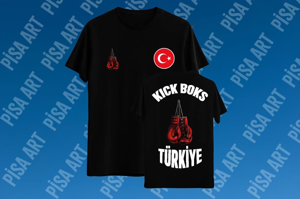 Kickboks Eldiveni Türkiye Logolu Ön Arka Tasarımlı Siyah T-Shirt